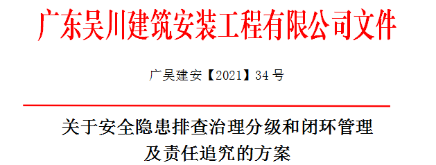 為建立安全隱患排查治理長效機(jī)制,強(qiáng)化安全生產(chǎn)主體責(zé)任,加強(qiáng)安全隱患治理,防止和杜絕事故發(fā)生,保障施工項(xiàng)目的安全生產(chǎn),現(xiàn)結(jié)合公司的實(shí)際,特制定安全隱患排查治理分級(jí)和閉環(huán)管理及責(zé)任追究的方案。