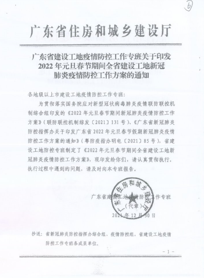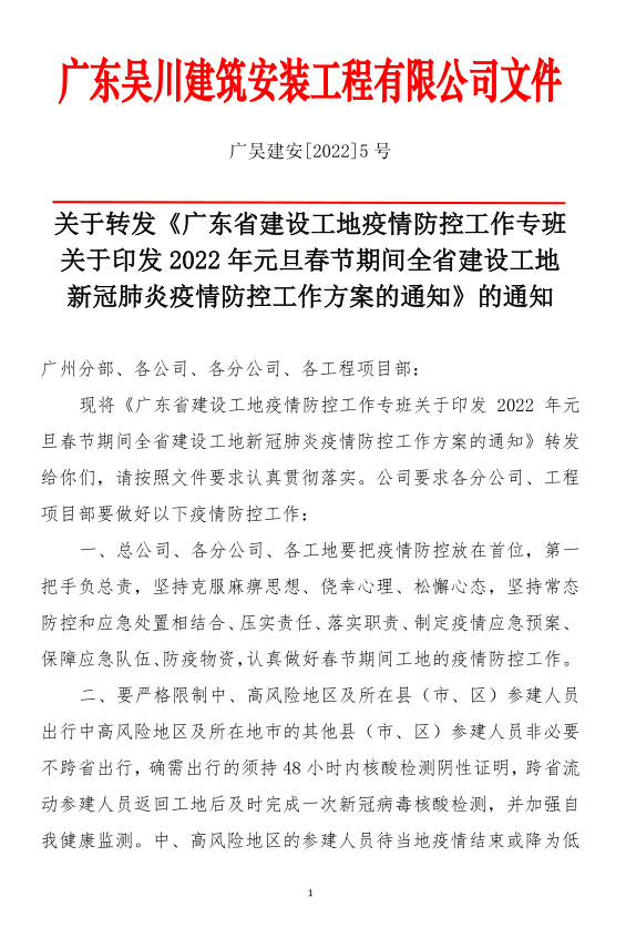 關于轉發《關于印發2022年元旦春節期間全省建設工地新冠肺炎疫情防控工作方案的通知》的通知